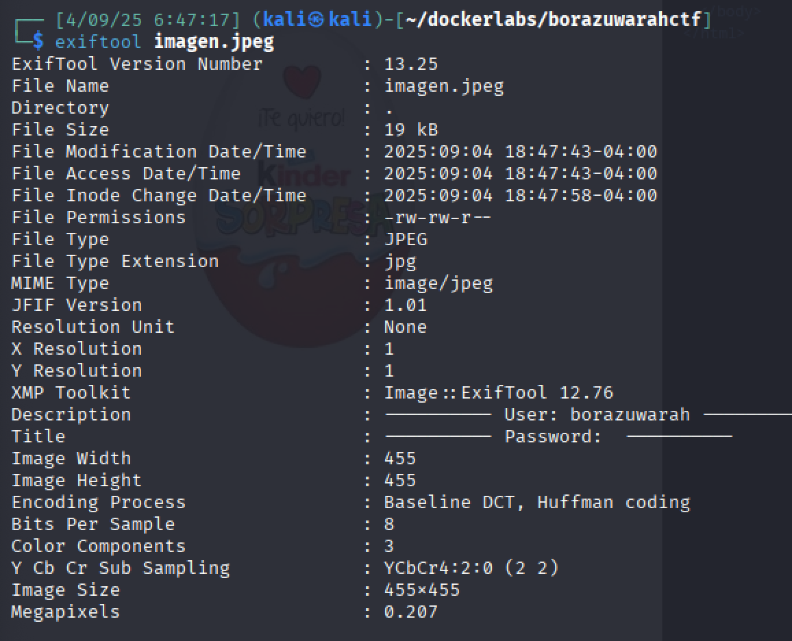 Si descargamos la imagen y miramos con exiftool