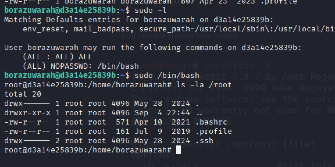 podemos encontrar que tenemos permisos para ejecutar /bin/bash como root y sin password.