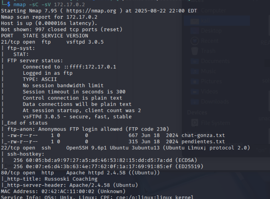 nmap -sC -sV 172.17.0.2