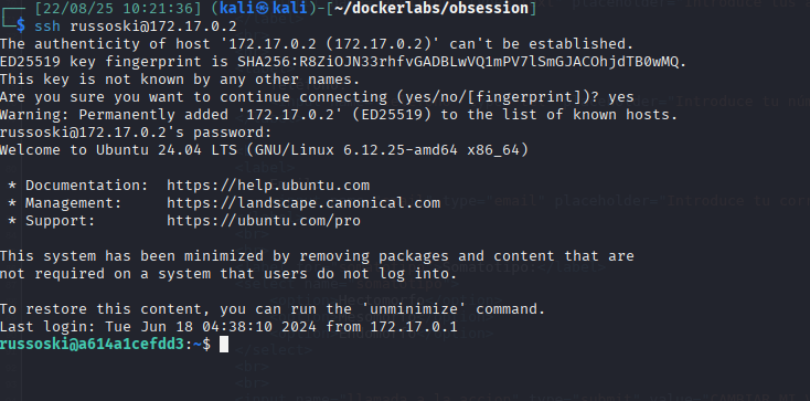Accedemos por ssh