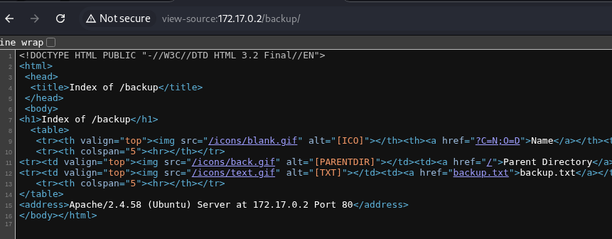 Navegamos en el directorio backup y vemos un enlace a un archivo txt